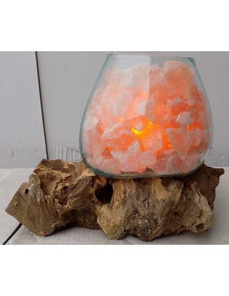 Lampada Di Sale Mod Unica In Vetro Soffiato Su Legno Salgemma Himalaya A